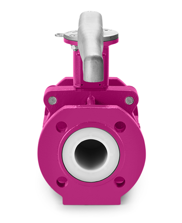 The single-piece PFA lining surrounds a flexible, metallic connection between ball and stem, combining the advantages of floating and one-piece ball-stem designs
